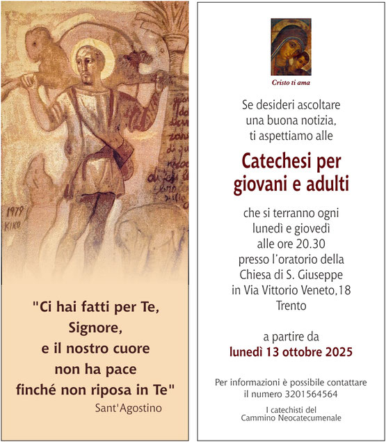 Se desideri ascoltare una buona notizia ti aspettiamo alle catechesi per giovani e adulti proposte dal Cammino Neocatecumenale. Puoi invitare anche parenti e amici.